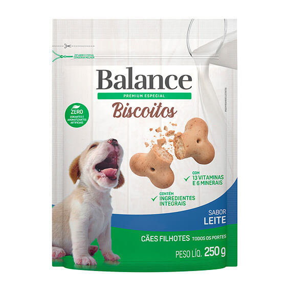 Un Bocado sabroso y saludable para tu cachorro. La Galleta Balance sabor Leche tiene un alto contenido de proteínas y contiene ingredientes integrales que proporcionan mayor saciedad, todo en un empaque práctico que garantiza la crocancia por más tiempo.